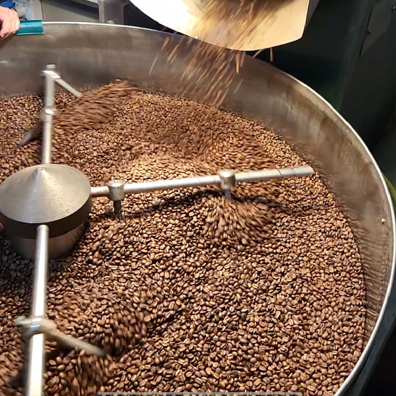 Unser Röstvorgang wird mit einem Trommelröster durchgeführt. Das bezeichnet man auch als Schalenbetrieb.